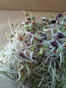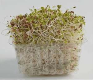 This picture was taken from a package of Deli sprouts. Here you can see the pigmented Radish root without the vibrant extensions seen when the Deli blend is in its pre-spread state.